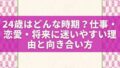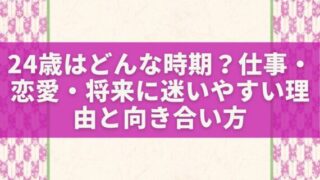 24歳は、まだ若いと言われる一方で、仕事も恋愛も将来も急に現実味を帯びてくる時期です。社会人2〜3年目で少し慣れてきたからこそ、「このままでいいのかな」と立ち止まりやすくなるのが、24歳という年齢です。恋愛でも、好きだけでは決めきれない迷い...