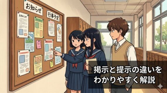 ですが、実際には使う場面も相手もかなり違います。学校のお知らせを壁に貼るときは掲示、身分証明書を見せるときは提示、と聞くと何となく分かるものの、自分で文章を書く場面になると、ふと手が止まる方も多いのではないでしょうか。